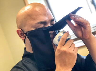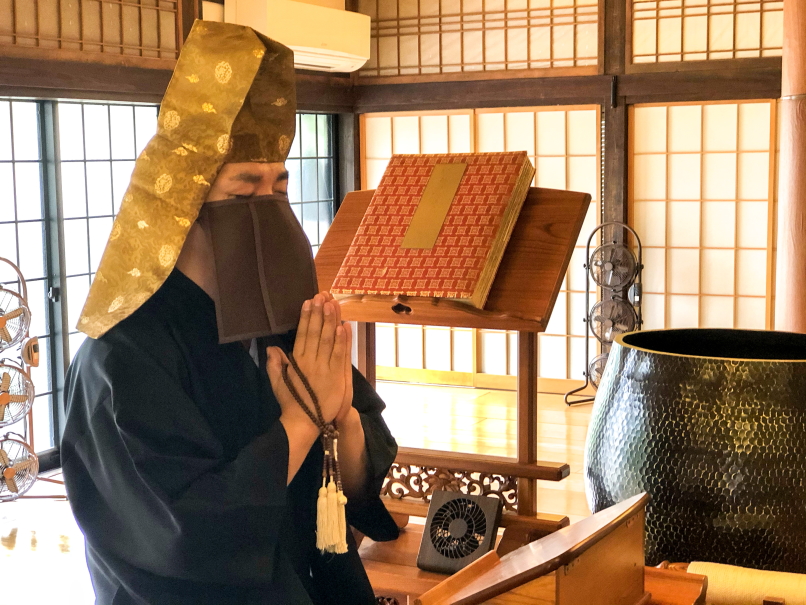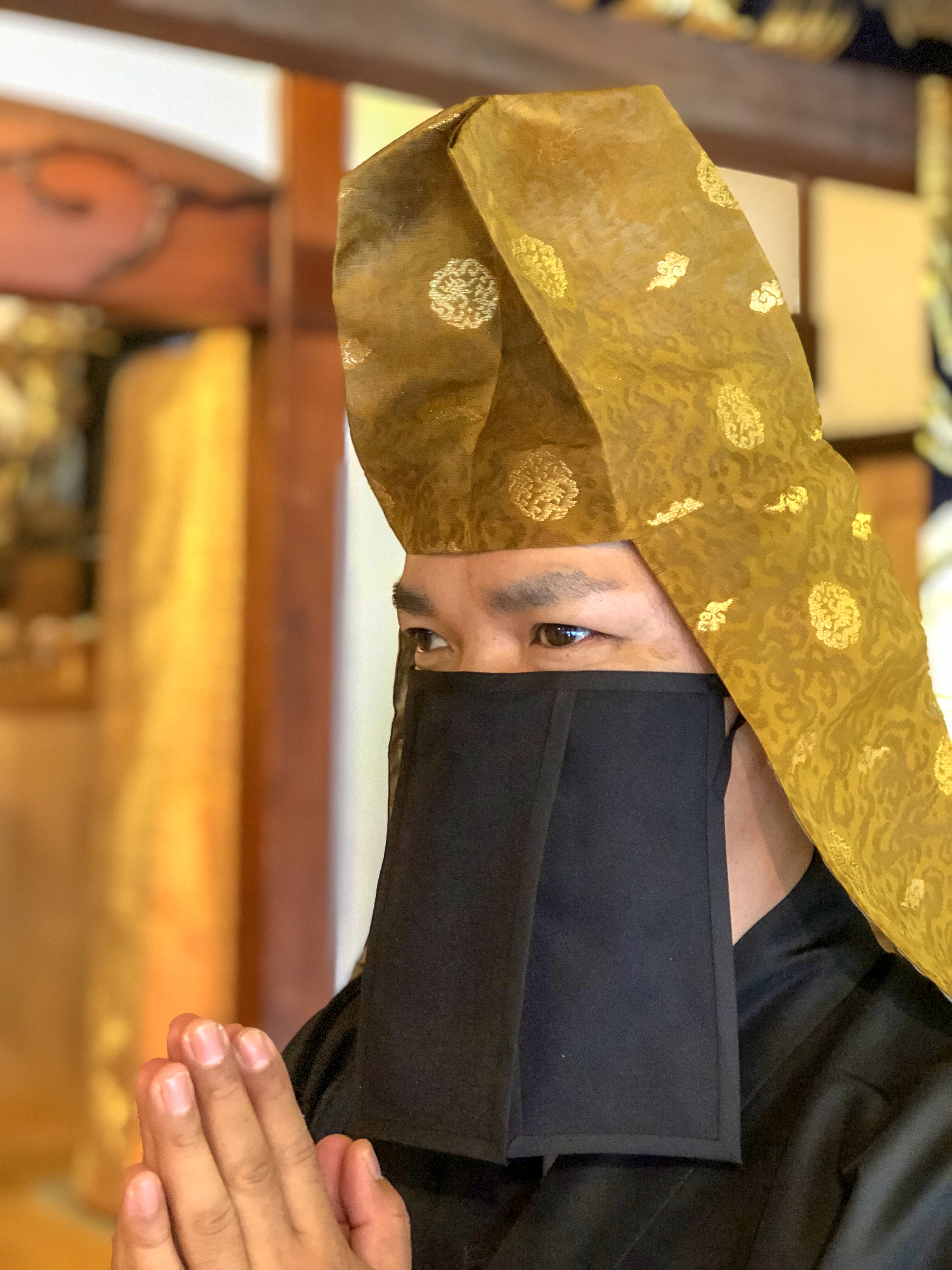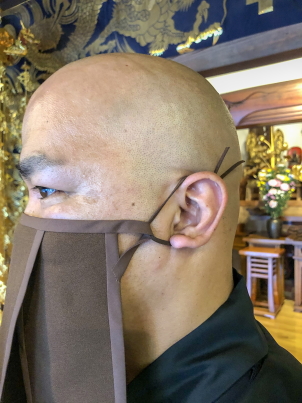 医療用マスクではないので、完全に飛沫を防ぐことはできませんが、「僧ベール」を装着することで檀信徒への安心感を与えてくれます。